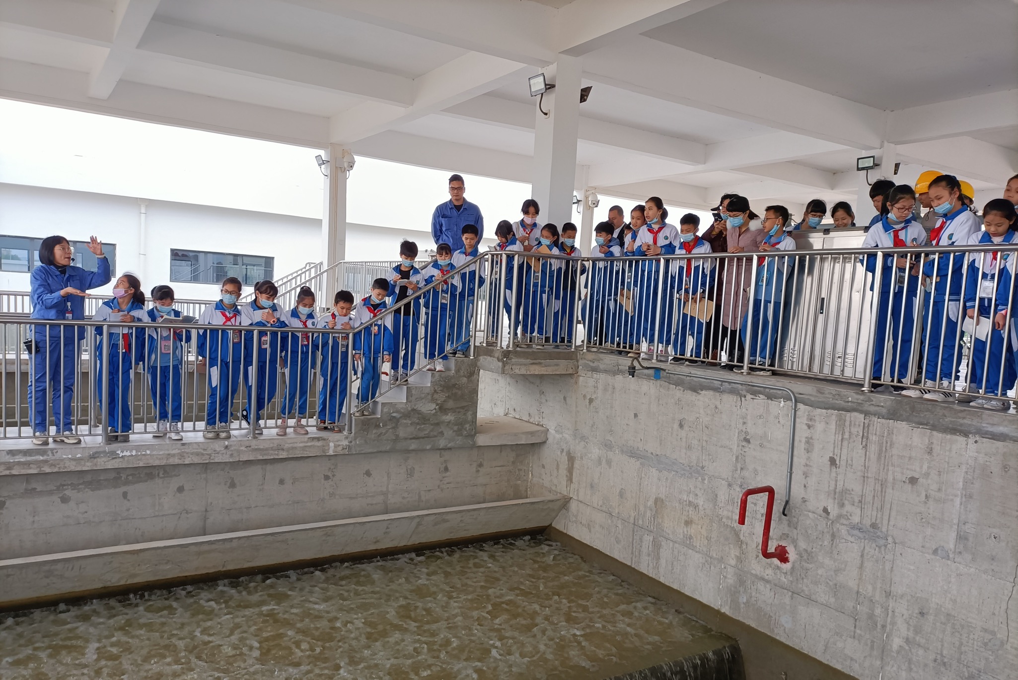 孩子們第一次近距離走進自來水生產線,先后參觀了混合井V型濾池、過濾池、送水泵房供水中控室。在參觀過程中,陪同講解人員還就水投公司的歷史、水源采集地、供水區域及生產流程等內容參觀人員作了詳細介紹。