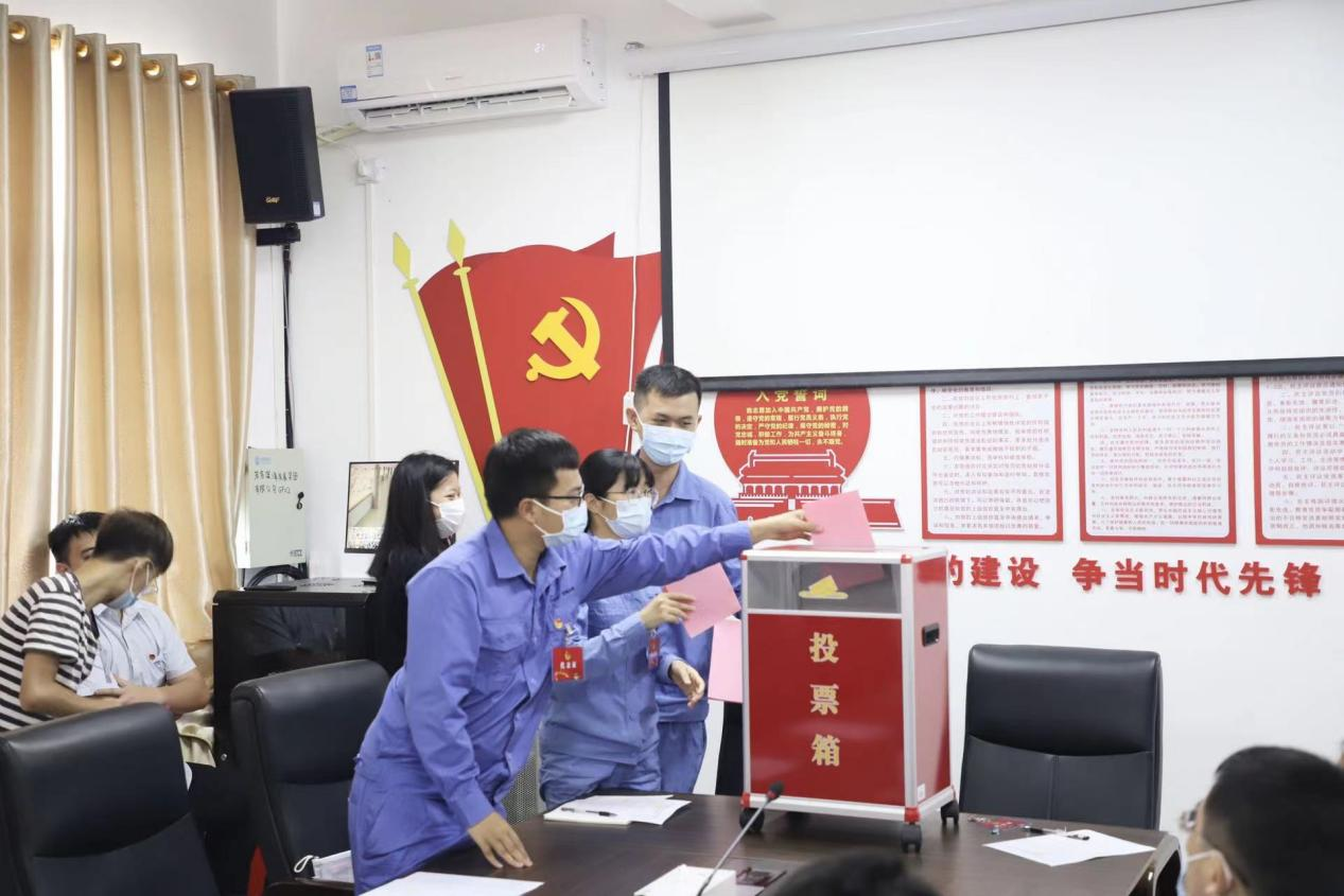 會議宣讀了《關于成立中國共產主義青年團茂名濱海發展集團有限公司支部委員會的批復》及《大會選舉辦法》,通過無記名投票選舉產生了金超群、鄭冰娜(女)、王擎天、王舒敏(女)、李東曉為共青團茂名濱海發展集團有限公司第一屆支部委員會委員。隨后召開第一屆團支部第一次全體會議,選舉產生了金超群為第一屆團支部書記,鄭冰娜為副書記,并安排部署了團支部的相關工作。